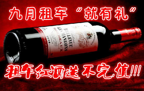 為了感謝先新老客戶(hù)對(duì)本公司的關(guān)照和支持,凡在本公司租賃商務(wù)車(chē)的客戶(hù)即可享受“大禮品”價(jià)值298元進(jìn)口紅酒一瓶,優(yōu)先報(bào)名者禮品不斷,送不完的禮品等你哦!!